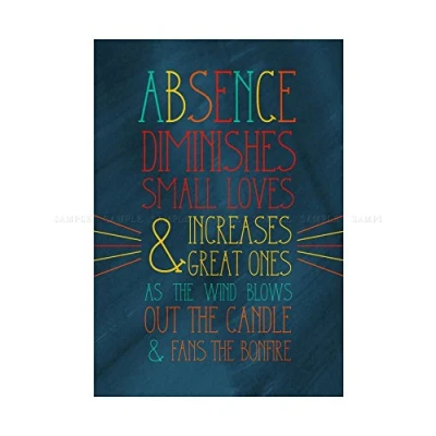Wee Blue Coo Quote Typography Absence Diminishes Love 12x16 Wall Art Print
