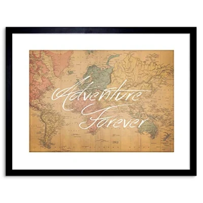 Wee Blue Coo Quote Typography Adventure Forever Map Art Framed Wall Print