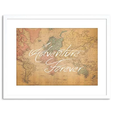 Wee Blue Coo Quote Typography Adventure Forever Map Art Framed Wall Print