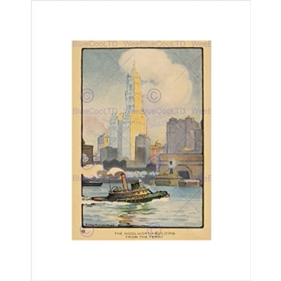 Wee Blue Coo Rachael Robinson Elmer American Woolworth Building Ferry Artwork Wall Art Print