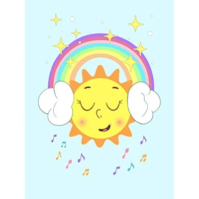 Wee Blue Coo Rainbow Headphones Musical Sun Unframed Wall Art Print Poster Home Decor