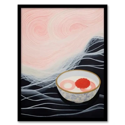 Wee Blue Coo Ramen Reflections Noodles at Sea Pink Midnight Kitchen Oil Painting Artwork Framed Wall Art Print A4