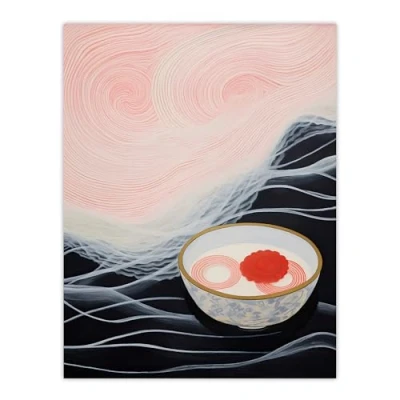 Wee Blue Coo Ramen Reflections Noodles at Sea Pink Midnight Kitchen Oil Painting Extra Large XL Wall Art Poster Print