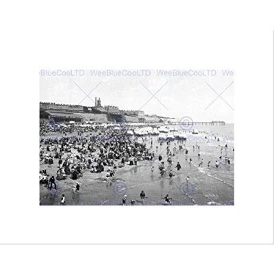 Wee Blue Coo RAMSGATE SANDS ENGLAND VINTAGE HISTORY OLD BW BLACK FRAMED ART PRINT B12X696