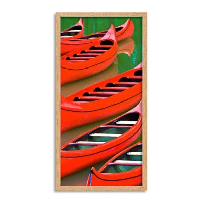 Wee Blue Coo Red Canoes Boat Lake Long Panel Framed Wall Art Print
