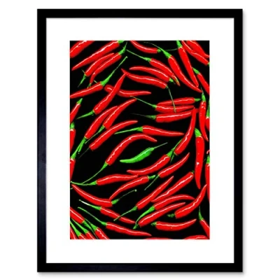 Wee Blue Coo RED CHILLI PEPPERS SPICE FOOD KITCHEN HOME BLACK FRAMED ART PRINT B12X8446