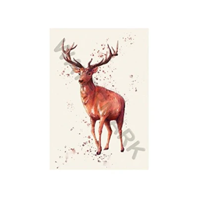Wee Blue Coo Red Deer Watercolour Wall Art Print