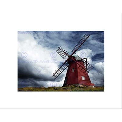 Wee Blue Coo Red Windmill Cloudy Sky Art Wall Print