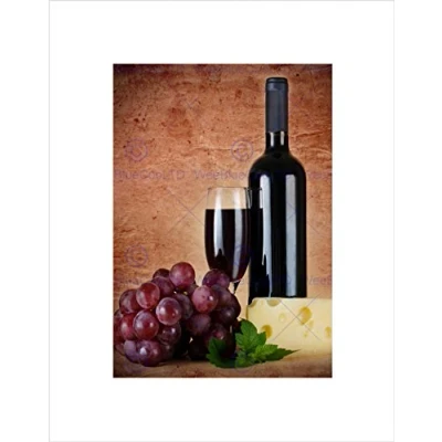 Wee Blue Coo RED WINE GLASS CHEESE GRAPES KITCHEN BLACK FRAMED ART PRINT PICTURE B12X9433