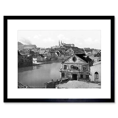 Wee Blue Coo Regnitz And Michaelsberg Bamberg Bavaria Germany 1895 Old BW Art Framed Wall Print