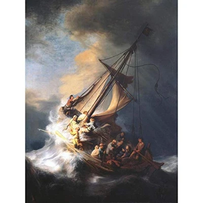 Wee Blue Coo Rembrandt Christ Storm On Lake Of Galilee Old Painting Art Print Poster Wall Decor 12X16 Inch