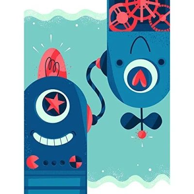 Wee Blue Coo Robot Friends Unframed Wall Art Print Poster Home Decor Premium