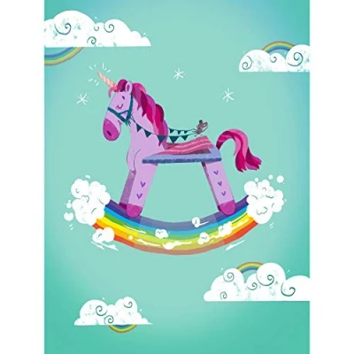 Wee Blue Coo Rocking Unicorn Rainbow Art Large Print Poster Wall Decor 18x24 inch