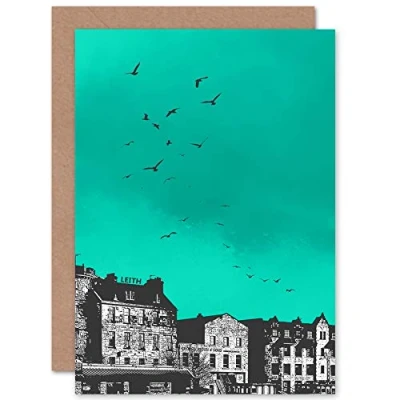 Wee Blue Coo Rooftop Birds Leith Greetings Card