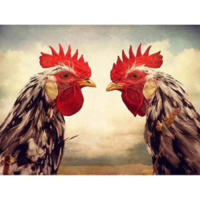 Wee Blue Coo Roosters Birds Chicken Farm Close Up Art Print Poster Wall Decor 12X16 Inch