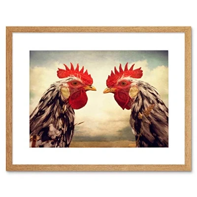 Wee Blue Coo Roosters Birds Chicken Farm Close Up Picture Framed Wall Art Print