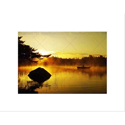 Wee Blue Coo ROWING BOAT ON A MISTY MORNING BLACK FRAME FRAMED ART PRINT PICTURE B12X8030