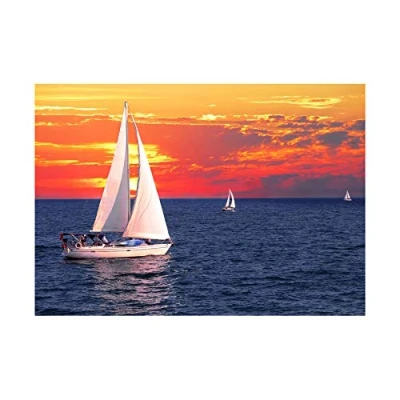 Wee Blue Coo Sailboats Sunset Pink Sky Sea Photo Wall Art Print