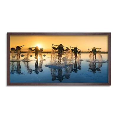 Wee Blue Coo Salt Harvesting Sunset Symmetry Long Panel Framed Wall Art Print