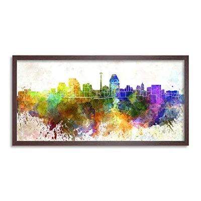 Wee Blue Coo San Antonio Skyline Paint Splash Cityscape Long Panel Framed Wall Art Print