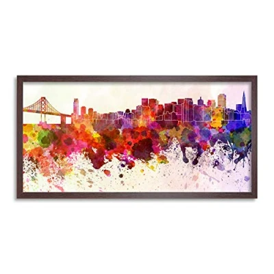 Wee Blue Coo San Francisco Skyline Paint Splash Cityscape Long Panel Framed Wall Art Print