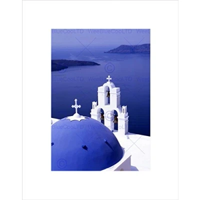 Wee Blue Coo Santorini Church Domed Roof Greece Home Black Framed Art Print B12X9518