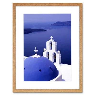 Wee Blue Coo Santorini Church Domed Roof Greece Home Picture Framed Wall Art Print