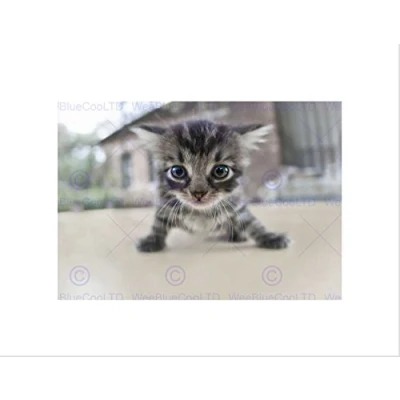 Wee Blue Coo SCARED KITTEN TABBY CAT BLACK FRAME FRAMED ART PRINT PICTURE MOUNT B12X9336