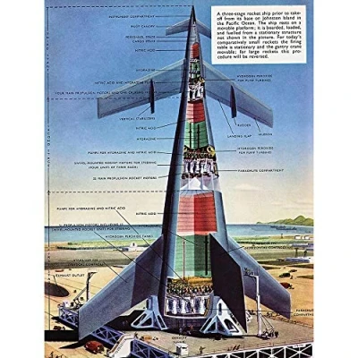 Wee Blue Coo Science Fiction Space Ship Design Drawing Rocket Mock Art Print Poster Wall Decor 12X16 Inch