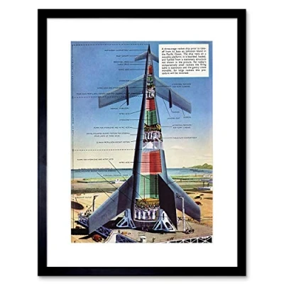 Wee Blue Coo SCIENCE FICTION SPACE SHIP DESIGN DRAWING ROCKET MOCK FRAMED ART PRINT B12X6218