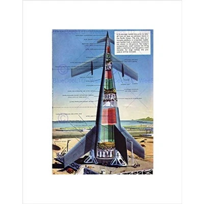 Wee Blue Coo Science Fiction Space Ship Design Drawing Rocket Mock Wall Art Print