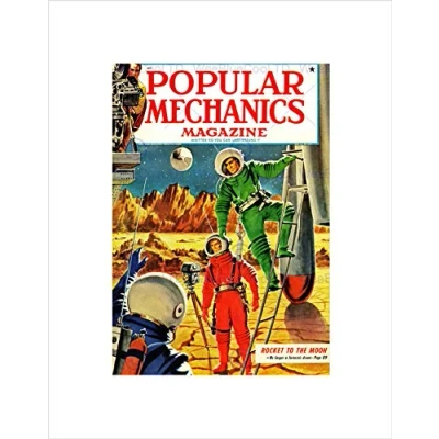Wee Blue Coo SCIENCE MAG POPULAR MECHANICS ROCKET MOON ASTRONAUT FRAMED ART PRINT B12X6263