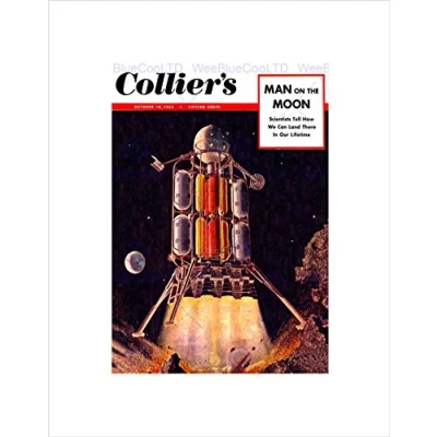 Wee Blue Coo Science Magazine Cover Colliers Man Moon Ship Craft Wall Art Print