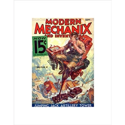 Wee Blue Coo Science Magazine Cover Modern Mechanix Artillery Tower Weird Art Wall Print