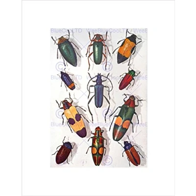 Wee Blue Coo Scientific Beetles Insect Colourful Rainbow Plate Wall Art Print