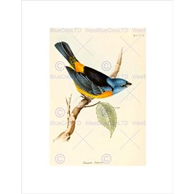 Wee Blue Coo SCIENTIFIC BIRD ILLUSTRATION FINCH TANAGRA DARWIN FRAMED ART PRINT B12X11247