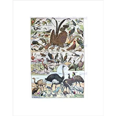 Wee Blue Coo Scientific Birds Identification Ostrich Penguin Flamingo Wall Art Print