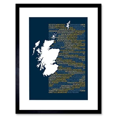 Wee Blue Coo Scotch Whisky Distilleries Map Framed Wall Art Print 12X16