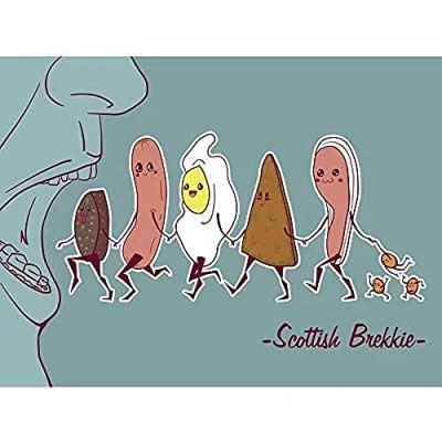 Wee Blue Coo Scottish Breakfast Cartoon Unframed Wall Art Print Poster Home Decor Premium