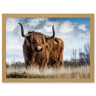 Wee Blue Coo Scottish Highland Cow Hairy Photo Artwork Framed Wall Art Print A4