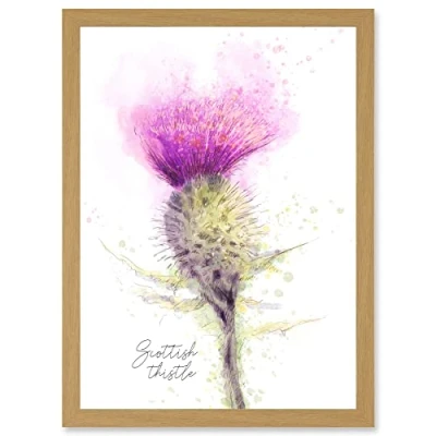Wee Blue Coo Scottish Thistle Flower Head Watercolour Scotland A4 Artwork Framed Wall Art Print