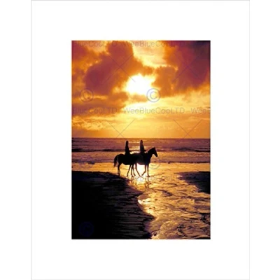 Wee Blue Coo Seascape Beach Horses Sunset Ocean Sand Waves Wall Art Print