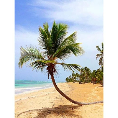 Wee Blue Coo Seascape Beach Sand Palm Tree Tropical Sea Art Print Poster Wall Decor 12X16 Inch