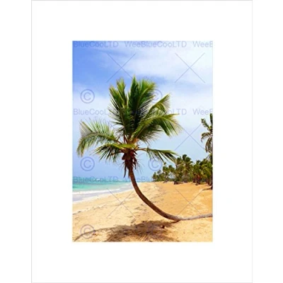 Wee Blue Coo Seascape Beach Sand Palm Tree Tropical Sea Wall Art Print