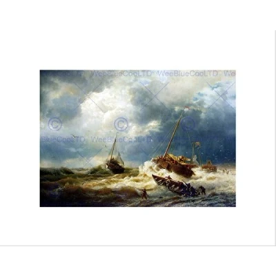 Wee Blue Coo Seascape Maritime Achenbach Ships Storm Dutch Coast Wall Art Print