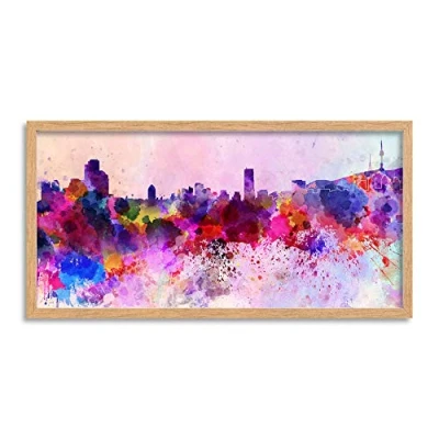 Wee Blue Coo Seoul Skyline Paint Splash Cityscape Long Panel Framed Wall Art Print