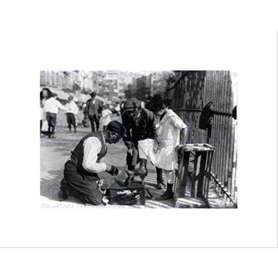 Wee Blue Coo SHOE SHINE NY 1916 VINTAGE HISTORY OLD BW BLACK FRAMED ART PRINT PICTURE B12X859