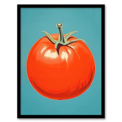 Wee Blue Coo Simplistic Tomato Red on Retro Minimalist Painting Artwork Framed Wall Art Print A4