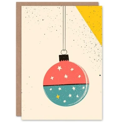 Wee Blue Coo Single Pink Ornament Bauble Stars Fun Xmas Art Blank For All Christmas Card