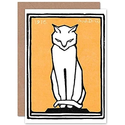 Wee Blue Coo Sitting Cat 1916 Julie De Graag Greeting Card With Envelope Inside Premium Quality